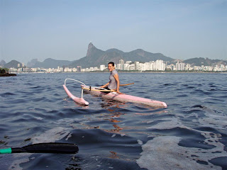 Parti com o Gustavo em direção à Praia Vermelha enquanto Bruno, Marquinos e Pedro acabavam de se aprontar para seguir na mesma direção em duas caiarcas duplas. O mar estava tranquilo e sem lixo na superfície. Faz um tempo que não vejo a imundice habitual. Digo que não vejo, porque todos sabemos que as águas do litoral do Rio estão super poluídas por esgoto. É desolador pensar que os emissários da Barra, de Ipanema e de Icaraí despejam todo dia milhares de litros de esgoto no mar sem nenhum tratamento. Não quero desanimar ninguém, mas a verdade é que remamos num caldo de merda. O que os olhos não veem o coração não sente...