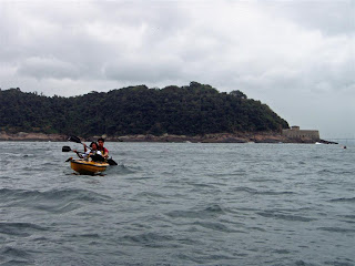 Entramos novamente no mar tomando cuidado com as ondas que quebravam sem muita força, mas que diziam pra tomar cuidado, afinal qualquer distração pode se transformar num acidente por alí. Cruzamos com as duas caiarcas  perto da laje e seguimos pra boca da barra. Roçamos o costão do Pão de Açúcar e logo adiante vimos duas OC1 paradas em frente ao Forte São José. Quando nos aproximamos reconhecemos Iuri e Alê que já retornavam pra PU. Caraca, como tem gente na linha d'agua hoje!